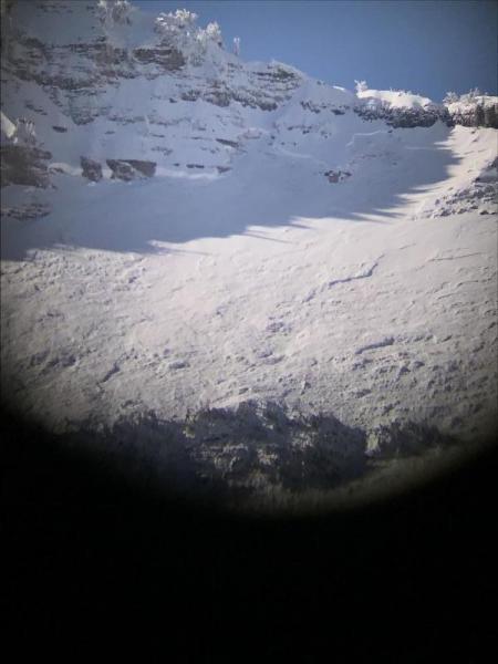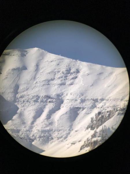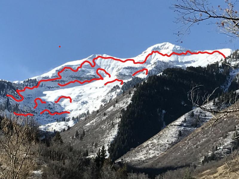 With clearing skies was able to observe crowns from this last storm cycle on the 8th-10th of Jan. Bunnells had a connected crown the full width of the upper bowl with multiple secondary crowns mid and low start zone and track where the upper slab pulled out small 800'-1000' wind pockets in the complex terrain. Estimating the total crown length at 1.25 - 1.5 miles with a crown that varies between 3' to 15' deep. Debris ran to roughly 7,600'. Not sure if the entire bowl went together, or if it released in sections. Cascade faired much better than Timp during those Sept/Oct/Nov storms, and as such has a deeper and more reactive repeat facet layer above 9000'. Bunnells and Big Springs has already gone through 1 avalanche cycle on the 26th from the Christmas storm. I expect these same facets to produce large avalanches again after the next storm cycle, or prolonged wind event. This is a possible indicator of what Timp will produce at the upper north elevations once it goes through another substantial storm cycle or two. A pit on the opposite side of Provo Canyon at 9100' north facing yielded an ECTP11-SP, PST-end 34cm, CT15-SC ontop of a similar layer of facets today.