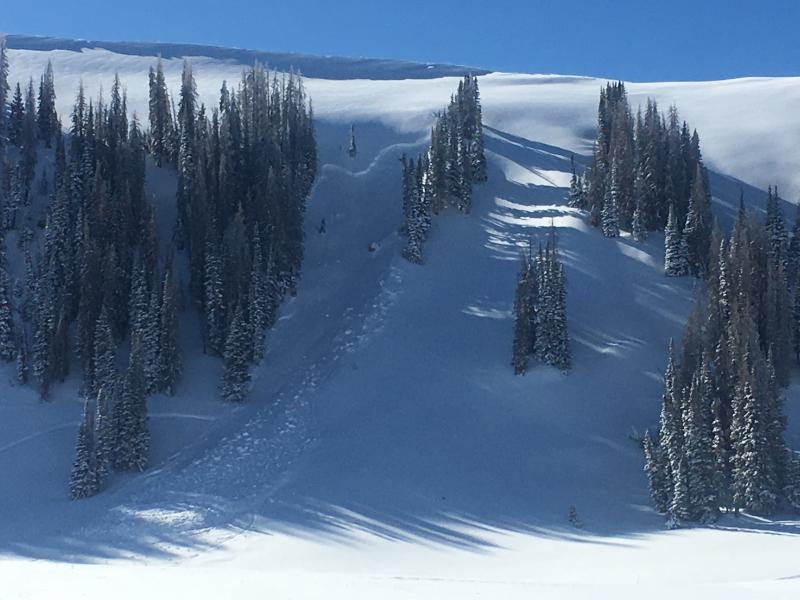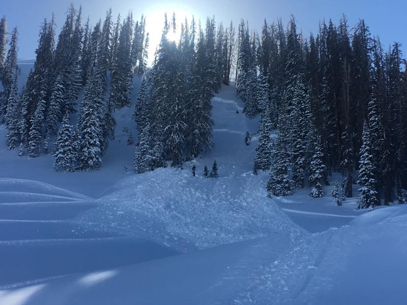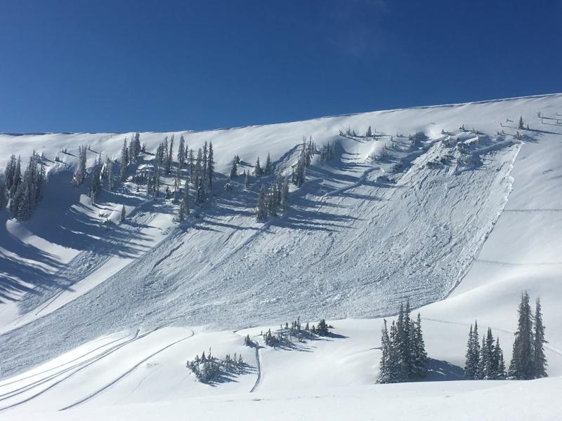 I rolled up to 3 sled triggered slabs in Upper Moffitt Basin this morning. These were sizable pieces of snow breaking 3' feet and a couple hundred feet wide. All slides were triggered low on the slope.... on generally flat terrain.