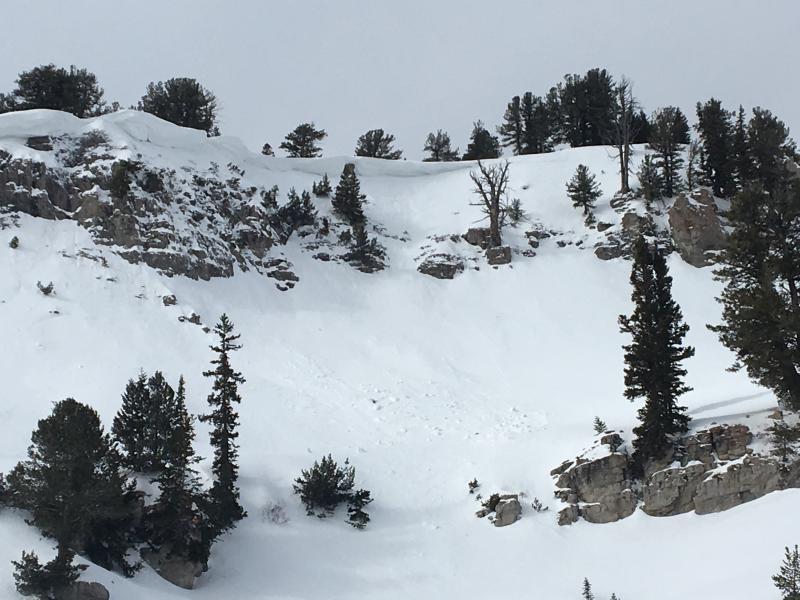 We could see evidence of some natural recent cornice fall/ wind slab activity off the South Ridge of Mt. Magog.
