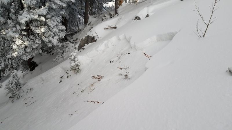 Some whoomphing was heard as we were skinning up to the ridge, and we were able to see a lot of cracking at the top of different slopes. Things felt very touchy.