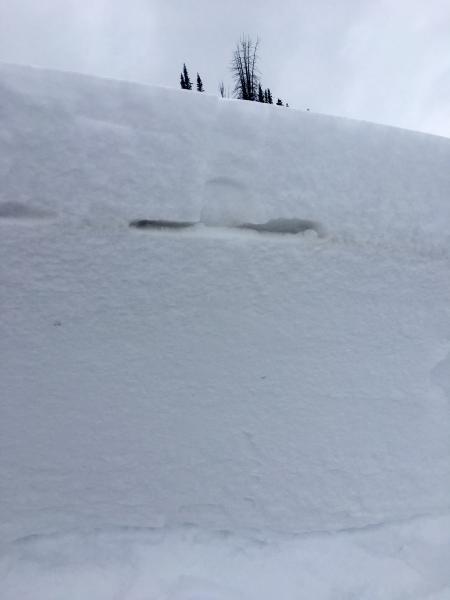 A very quick crown profile showed F+ (12") storm snow on top of a very consolidated slab. Pencil to Knife hardness on top of a thin layer of facets. Fists in the upper layer, can't even see where I was poking with my finger and then the facet layer on the bottom.