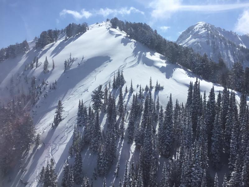 This was one of two human triggered avalanches today in the Hells Canyon Area just outside the Snowbasin Ski Area Boundary.
