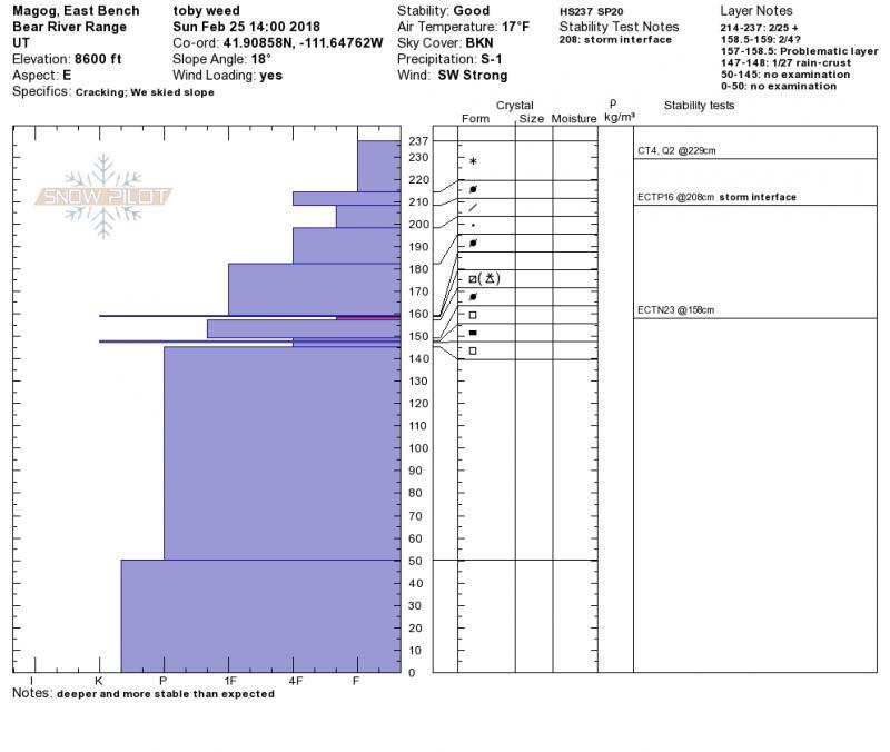 Snow profile similar slope nearby (south of avalanche). Snowpit dug a couple days before observation.