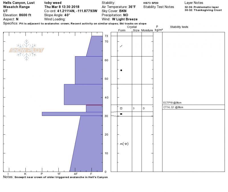 Snow profile from 3/8 in Hell's Canyon, not far from the avalanche site.