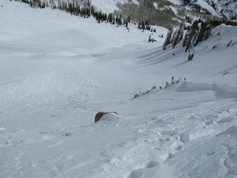 Middle image- likely trigger point... rock that was barely covered with very weak snow.