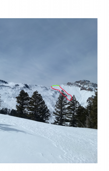 Large avalanche under the lookers left side of head wall.
