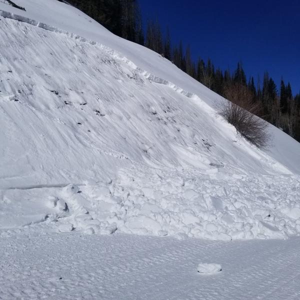 This sled triggered avalanche occurred on Sunday, 3/11/18. Observation posted on FB, unintentionally triggered and apparently no injuries.