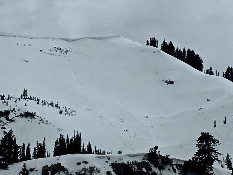 I spotted this recent avalanche in 3 Terraces Bowl on the east side of Providence Peak. I have no idea when it occurred or what triggered it. Likely a natural, triggered by cornice-fall during the recent warm spell. There were lots of tracks in the area though, so it might have been human triggered.