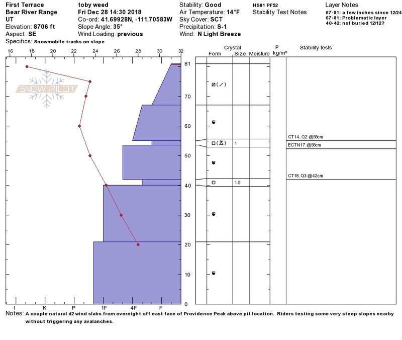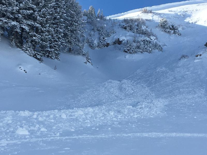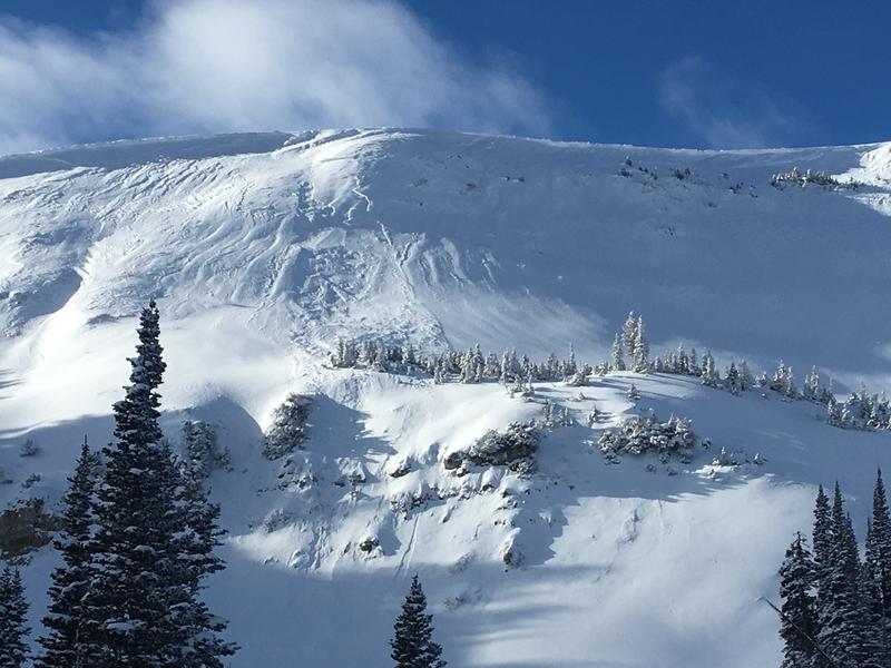 We could see evidence of two decent sized natural wind slab avalanches that fell off the Providence Peak ridge-line. Found good stability in lower terrain and on slopes that weren't so wind drifted.