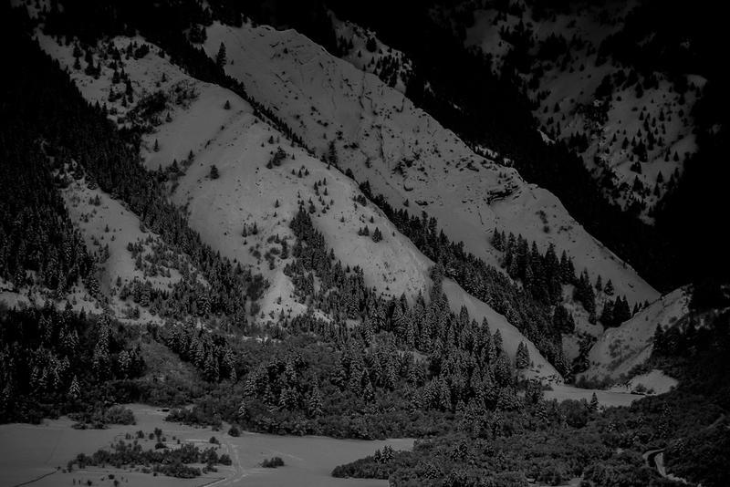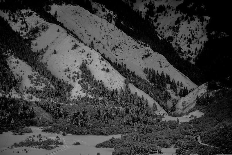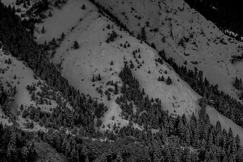 Here's some photos I got of the slide on the North Ogden Divide today. I could barely make out the fracture line from across the valley. The photos are poor - I did my best to bring out the details of the avalanche. I don't have any additional info other than what Kory already posted and what the media has reported. My best guess is that is slid on NSF and SH that formed during the cold period that started New Year's Eve. Intense precipitation this morning and through today with substantial water (est. 12-16" of snow with about 1.5" SWE at this elevation), plus a little wind was all it needed.