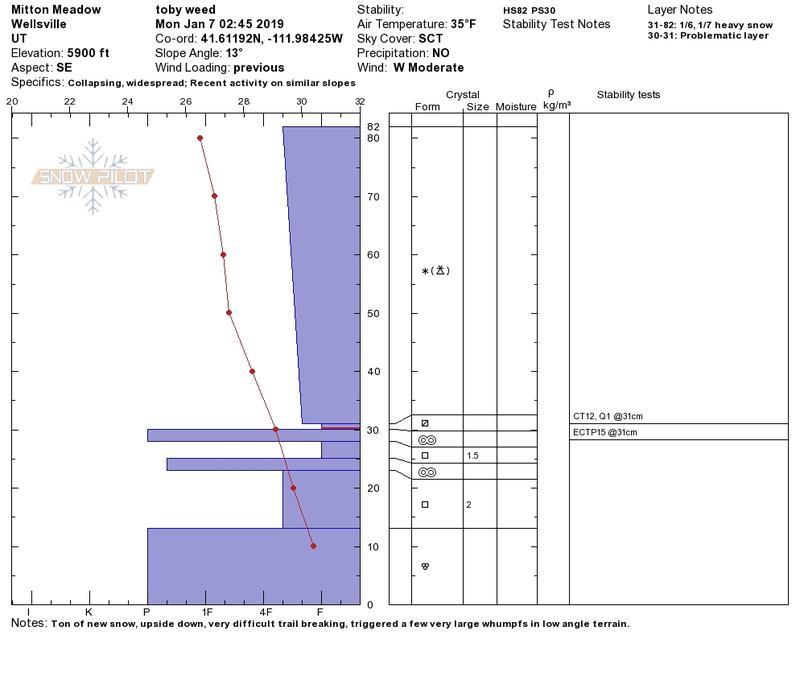 Snow profile from big meadow east of Mitton Peak....~5900'