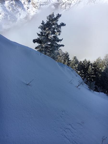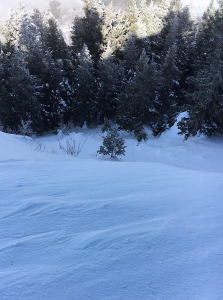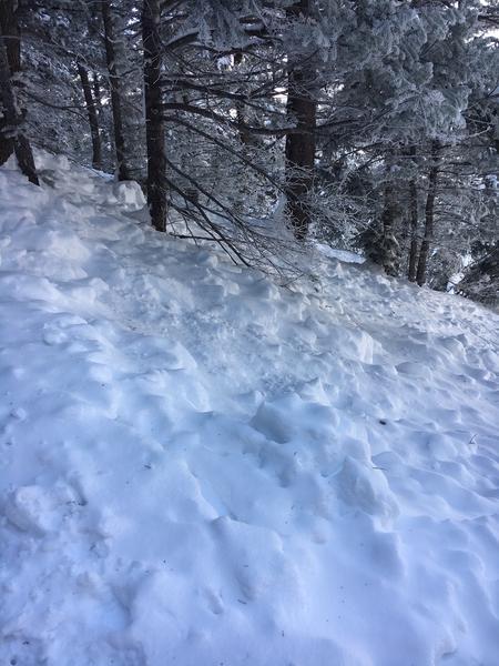I came across a small, older avalanche, probably from the storm on the 6th or 7th. The starting zone was a heavily wind drifted small ridge. Really hard to tell the details, though I side slipped down bed surface on the way down. Much of the slide had blown back in, even with shallow hard slab in places. Well down the slide, a flank seemed to be new snow failing on facets. Small, but interesting for the low elevation and that it crosses a trail heavily used by snowshoers.