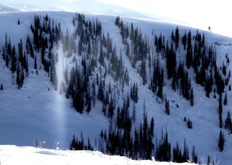 Numerous pockets on this slope released during the storm on Jan 7, 2019.