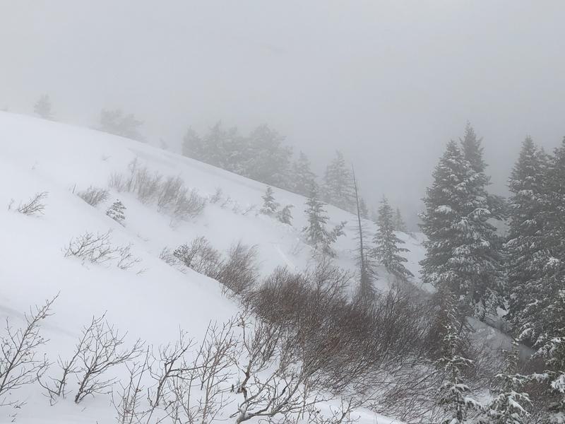 Noticed this as we were skiing down the last run. A somewhat unexpected spot. The last little north facing shot at the end of Cutler Ridge that drops back down to the trail. did not run very far. Starting zone was probably right around 30 degrees. I didn’t inspect closely.