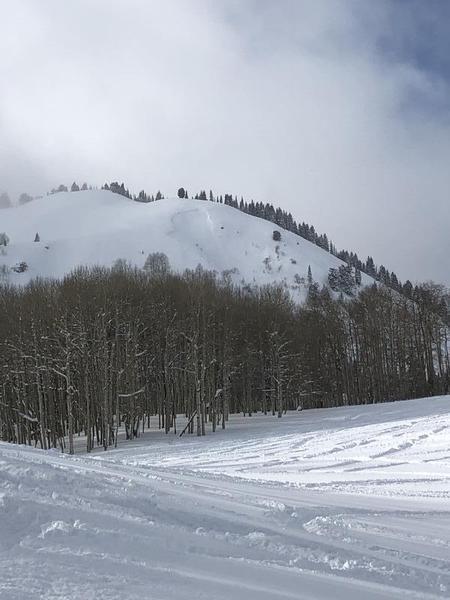 This appears to have happened yesterday, at the end of the storm. No tracks were seen around the slide.
