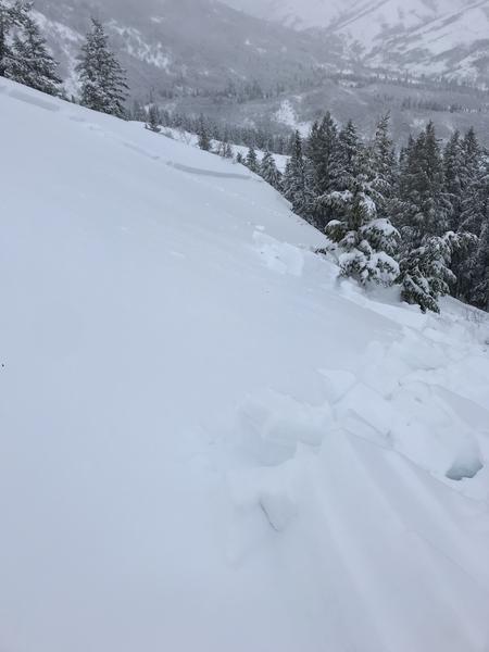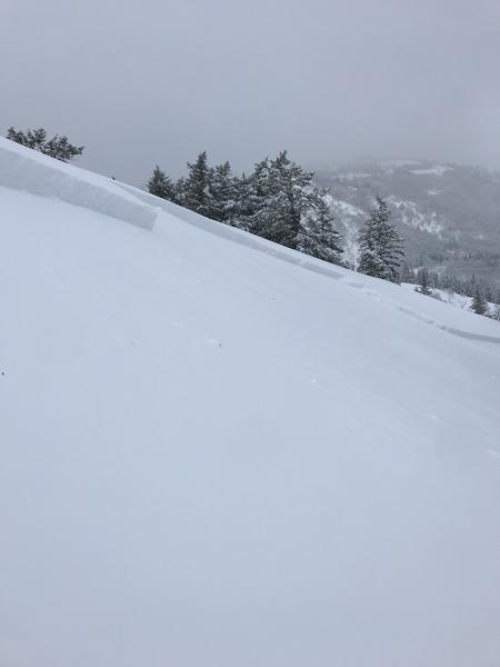 This slide has already been reported as on the end of Cutler Ridge. I am adding some details. This slide was at 7000ft. on NE 33 Deg. slope. 20 inches crown. It appears that it slide on old near surface facets on a protected slope. This is the third time I have seen this slope slide over the past 32 years. The last time it was on surface hoar in 2017.