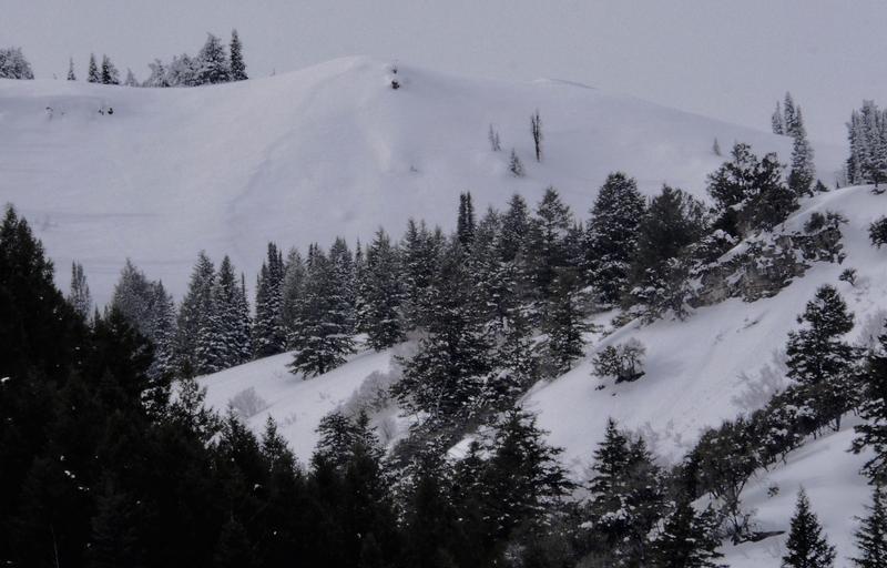 I could barely see evidence of a large natural avalanche in South Wood Camp. It looks like there was a fair amount of natural activity in the area, with new snow and flat light obscuring much of the evidence.