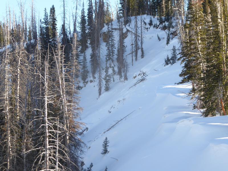 Natural avalanche that released recently (exact date unknown) due to wind drifted snow overloading buried sugar snow (facets). This path is a frequent offender.