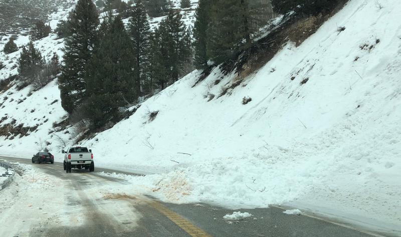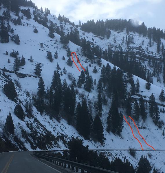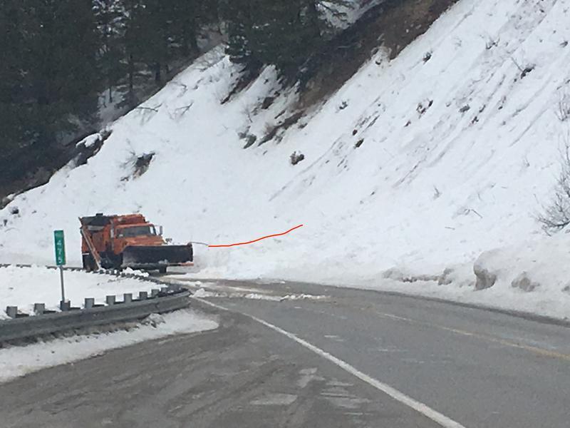 Warm temps and saturated snow from previous night's rain were main contributors to instability. Slide started with small point release and slowly fanned out. Hit lower, steeper fan and gouged down to dirt before hitting highway. Covered inside lane completely and most of other lane with 2-4' of snow. WL-N-D1.75-R2.