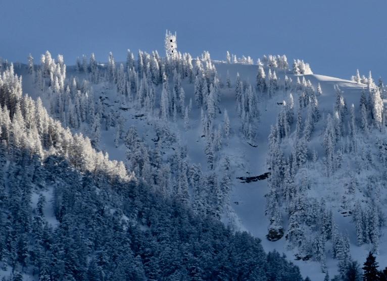 This is a poor photo and taken from a distance, from Hwy 89 yesterday evening. Looks like a large natural hard slab avalanche on the north side of Logan Peak.