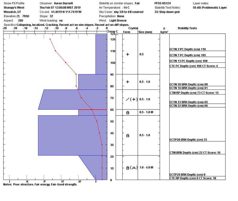 This event highlights the hazard created by recent loading on slopes that had previously demonstrated difficult to trigger, non planer, broken results in stability tests. Any slope that had a thin snow pack prior to the recent storm event is to be approached with extreme caution due to the current deep slab avalanche problem.