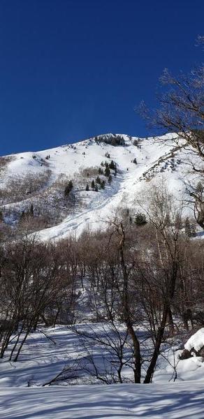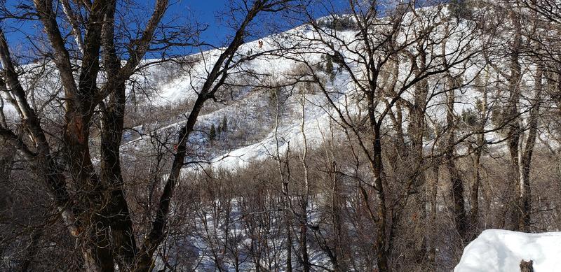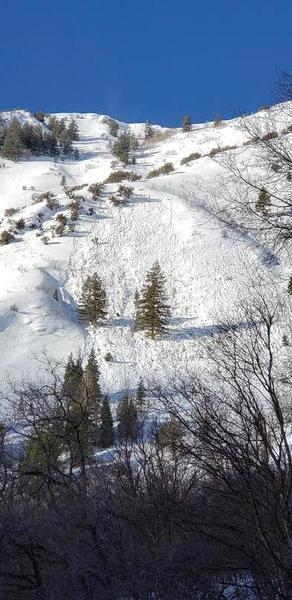 Very wet snow conditions in Bartholomew canyon. Lots of cascading snowballs in many areas triggering natural avalanches in lower canyon. Unable to reach upper canyon area due to need to transit through large run out zone. Back side of Provo peak / Corral Peak / Freedom Peak is going to be very dangerous. Several avalanches in the area a few weeks ago, new snow/wet conditions looking very bad.