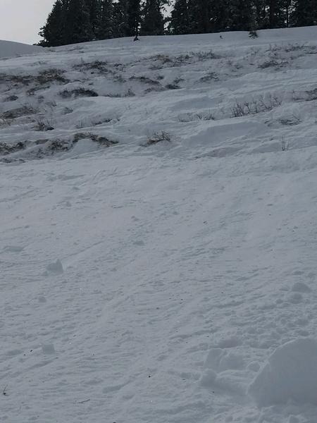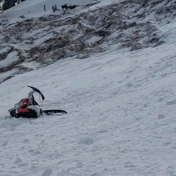 Condition for south skyline moderate. A group of riders headed for the hill climb (steep) rider 1 headed up the north side of the hill followed by second rider. 1st rider made it to the top turned around and headed down the line he ascended the whole slab broke loose, very wind blown. Rider 1 lost his snowmobile to the slide, he was able to stay at point of origin. Rider 2 was just far enough to the north to not be swept downhill. No avalanche beacons, probes.