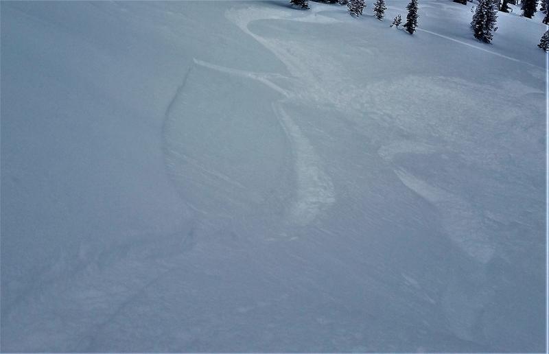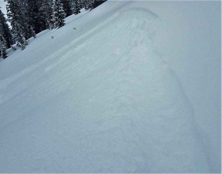 We rode in the Central Bear River Range today. We found very sensitive storm slabs and long running sluffs on terrain over about 32 degrees.