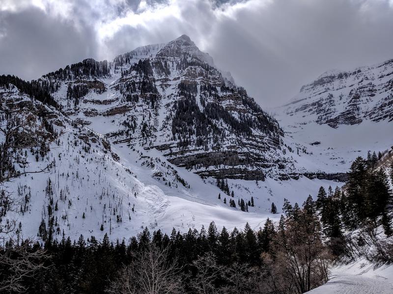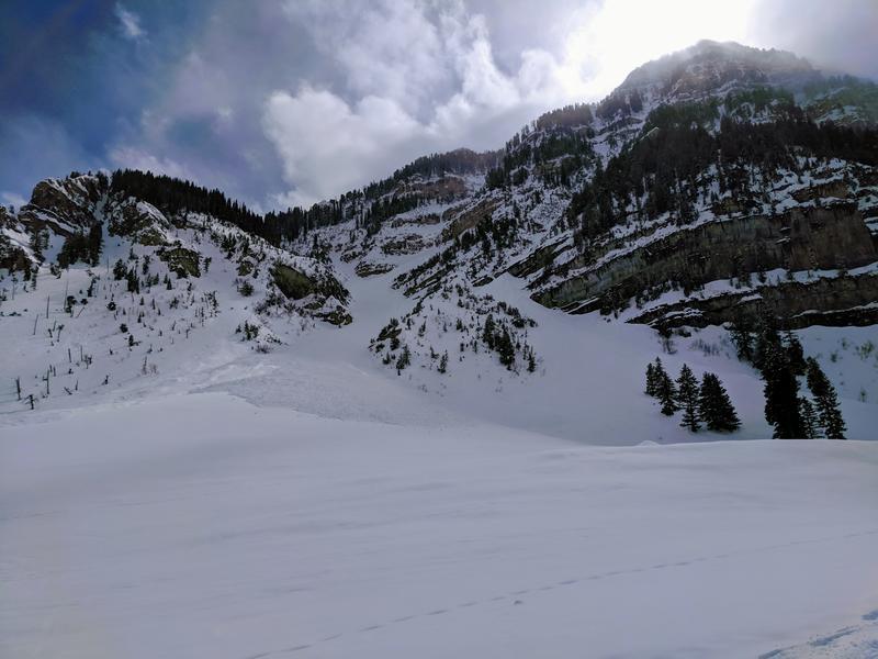 Skiing down Alpine Loop road above Aspen Grove around 3pm I spotted avalanche debris that came off Elk Point that wasn't there when I went up. It ran down into the Primrose Cirque drainage. Lots of small slides in the area on slopes steeper than ~30 degrees, many started under solar heated cliff bands.