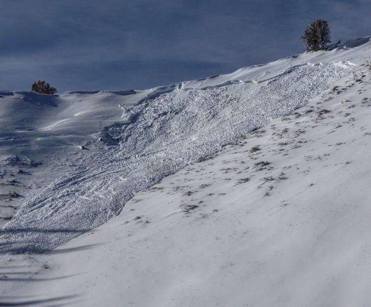 Riders reported that this avalanche released during the day while they were up there. It is most likely that they triggered it remotely from a distance away from the actual avalanche.