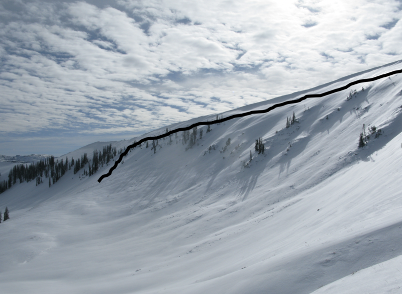 Breaking naturally and failing on weak snow near the ground, looks like this well connected slab released on the 28th or 29th.