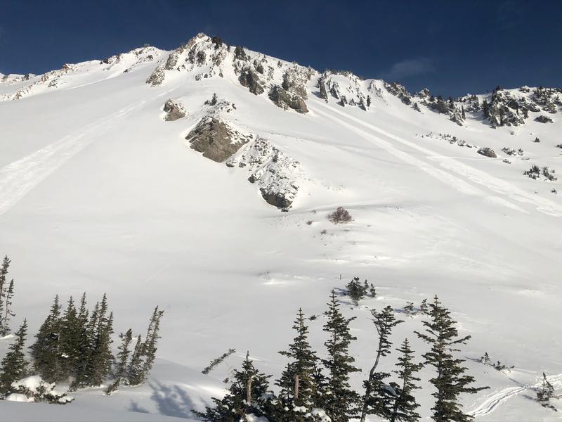 Multiple Dry Loose Avalanches off the American Fork East Twin with aspects ranging from SW to SE. They appeared to natural during the evening on 20191230 or during the early morning hours on 20191231. Size estimated at D1.5, and very long running.