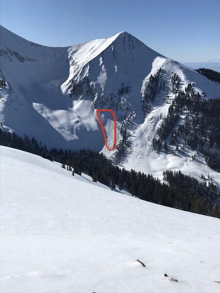 Observed this slide from Laurel Ridge. It appeared to have run natural sometime since the last storm. There is a crown just under the cliff bands above Tele Gold. It was notable, especially because this more frequently skied path ran and others nearby (Lawn Mower, Gravel Pit Lanes) did not. Also noticed some smaller slides in Middle Cirque, and point releases near steep cliff bands.