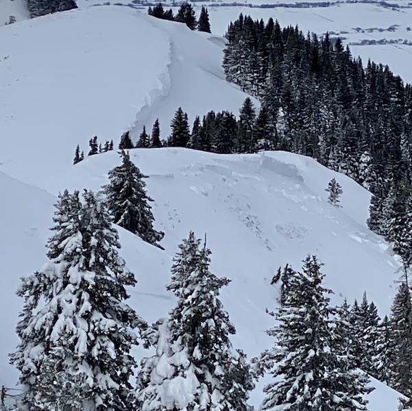Likely occurred during Thursday morning's intense storm. The Avalanche failed on sugary faceted snow near the ground, exposing the rocks. Crown is deeper than about 6' in places