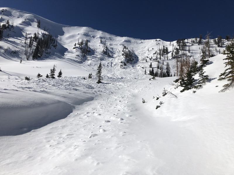 This is one of a number of natural avalanches that occurred during the windy storm. It involved only the upper layers of the snowpack.