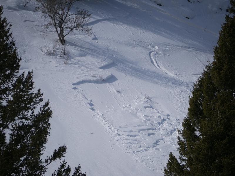 We could see this small recently triggered avalanche from Hwy 89 in Beaver Canyon when we came through at around 1:00 this afternoon