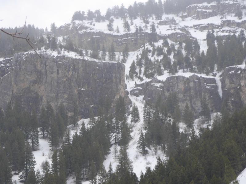 I was taking pictures of fresh natural wet avalanche debris above Guiniva-Malibu Campground when I accidently caught another one starting to fall off cliffs down-canyon...