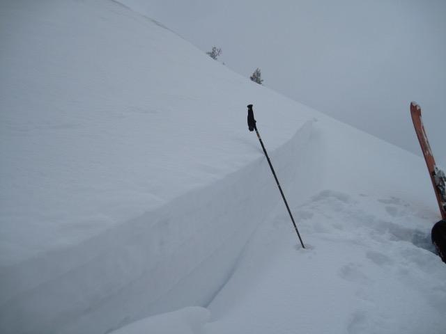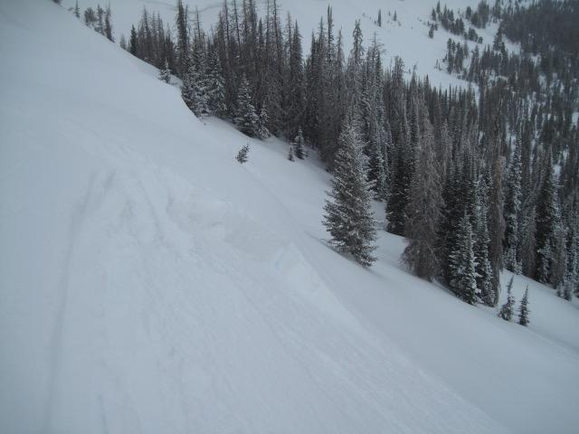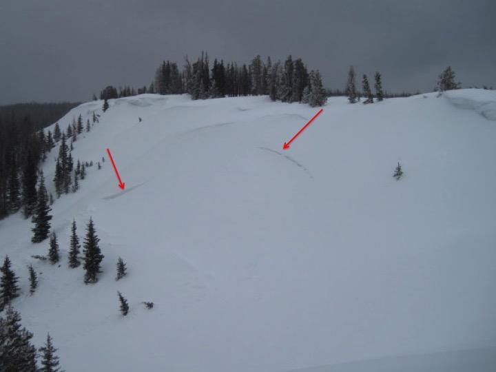 A few soft new snow slabs along the ridge lines not breaking very wide and manageable in size today.