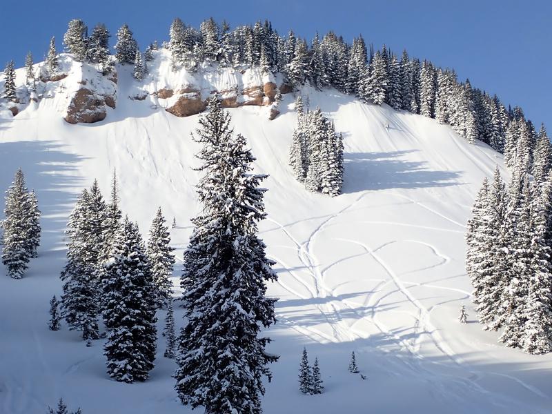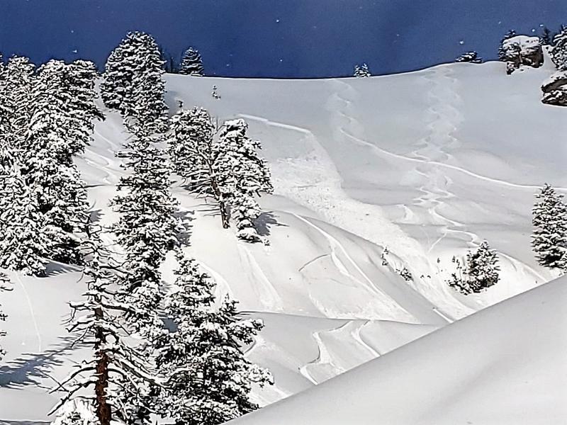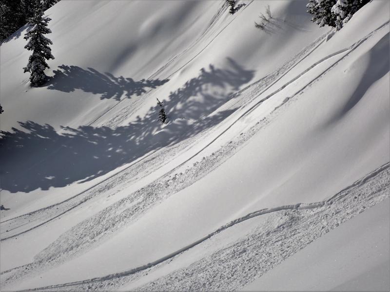 Other slopes seemed to be bonding much better. There was significant sluffing in the north facing Miller bowl but no slab releases (Picture 5). We also rode some steep North facing slopes with nothing more than some minor sluffing.
