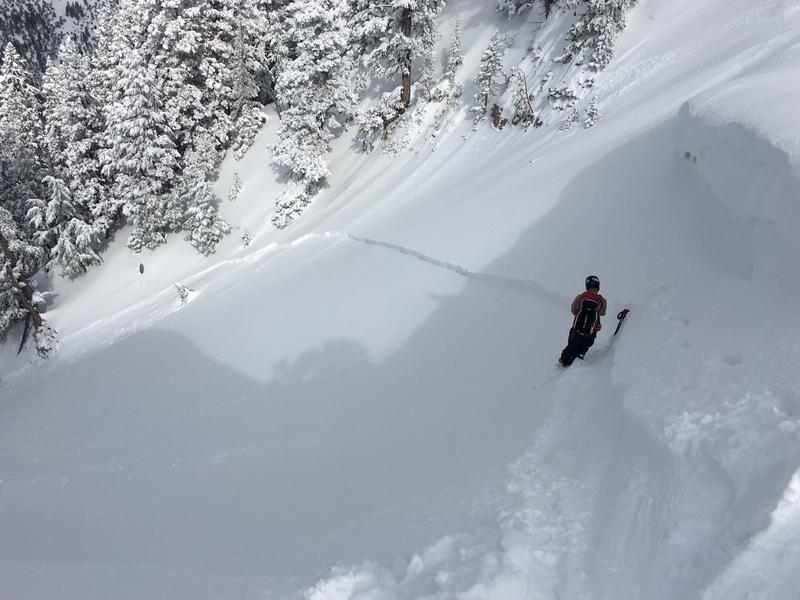 We had been skiing north facing slopes all day with no red flags. This slope is different than what we had been skiing as it is between two canyons and gets a lot of wind loading. I decided to ski cut it, and it fractured and ran down before I could even get across the slope. The top 12" were more cohesive/slabby than other snow we had been skiing. The bed was fairly hard and smooth, which is different than other north slopes we had skied. I suspect it had slid before the recent storm, and the new snow did not bond well to the surface.