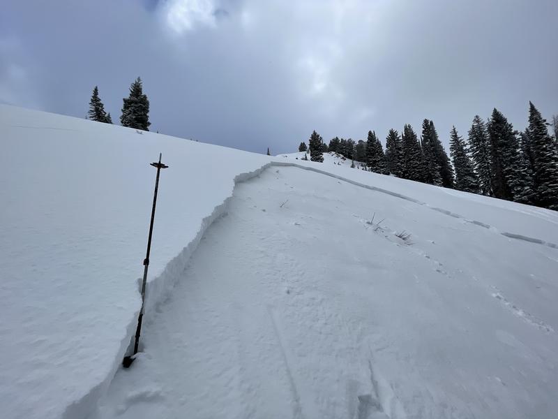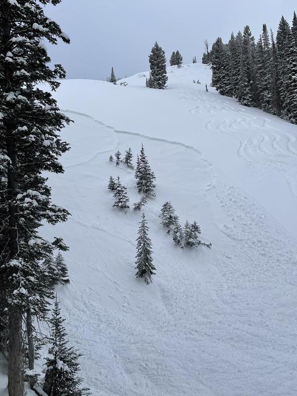 Avoided the concave center punch like COVID19. With the red flags observed (weak layer, new snow, wind loading, cracking, collapsing, and the desire to ski powder), me and my partner concluded a remote trigger was likely. We farmed the safer lower angle flank until the obvious remotely occurred at 34 degrees. Not a huge slide, but it had five feet of deposition in traps. (ECT 5 observed in the crown.)