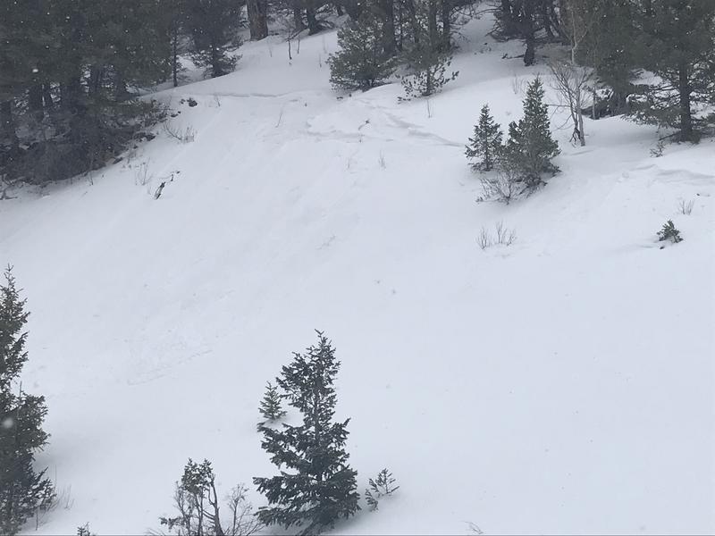 Very Shallow rider triggered slide across from Beaver Backside Parking lot. Only ran a short distance. The area holds shallow faceted snow that continues to weaken.