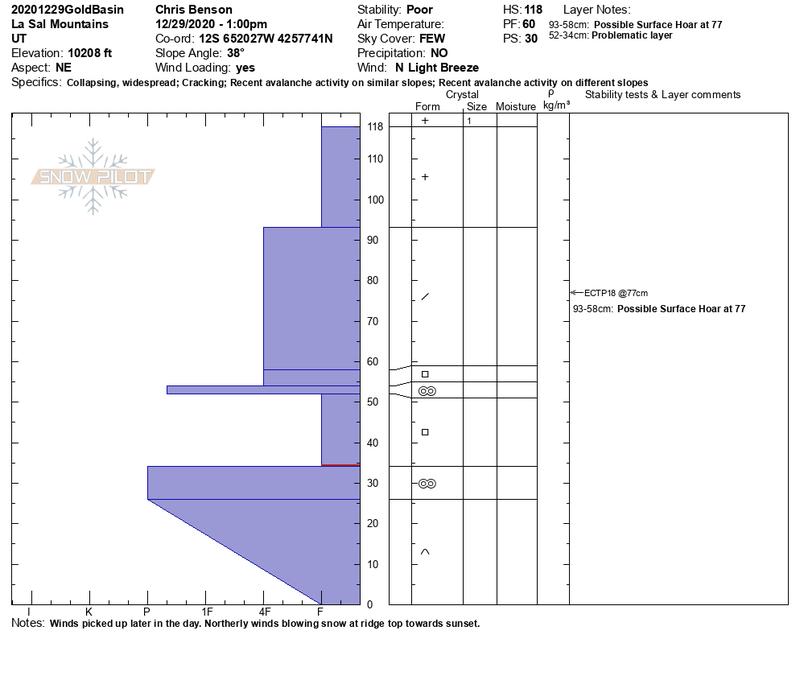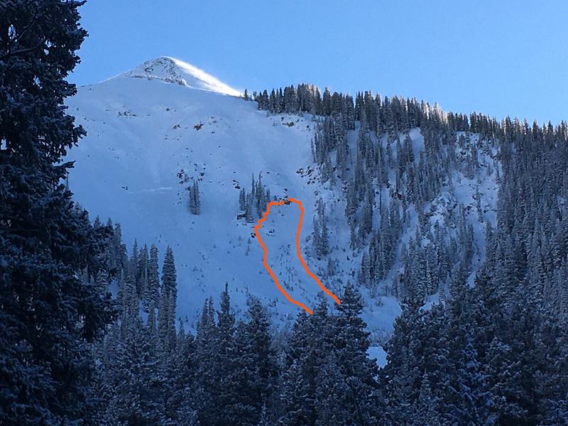 First natural cycle of the season. After an extended dry spell, 12"-20" of snow accompanied by mod-strong SW winds placed a significant load on a shallow and fragile snowpack. Did not get close enough to observe the crown but snowpits dug that day, and up to this point throughout the season, revealed a stratified and faceted snowpack, with the primary layer of concern being a weak layer of loose facets from early November storms sitting on top of a faceted, knife hard, melt-freeze layer formed in late October. We also observed a weak layer higher up in the snowpack that failed with a score of ECTP18, and this could also be the culprit, but due to widespread sensitivity and collapsing on the deeper, faceted layer above the crust at 35 cm, I'm inclined to believe that is the weak layer involved here.