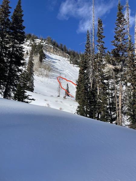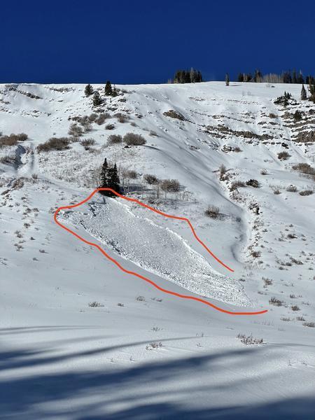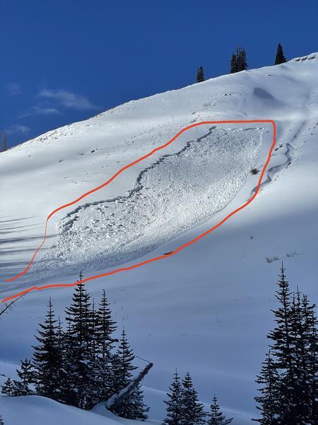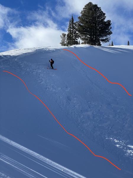 This is a frequent offender most seasons. Today it didn't move until it was remote triggered from lower on the slope. 9800ft NE