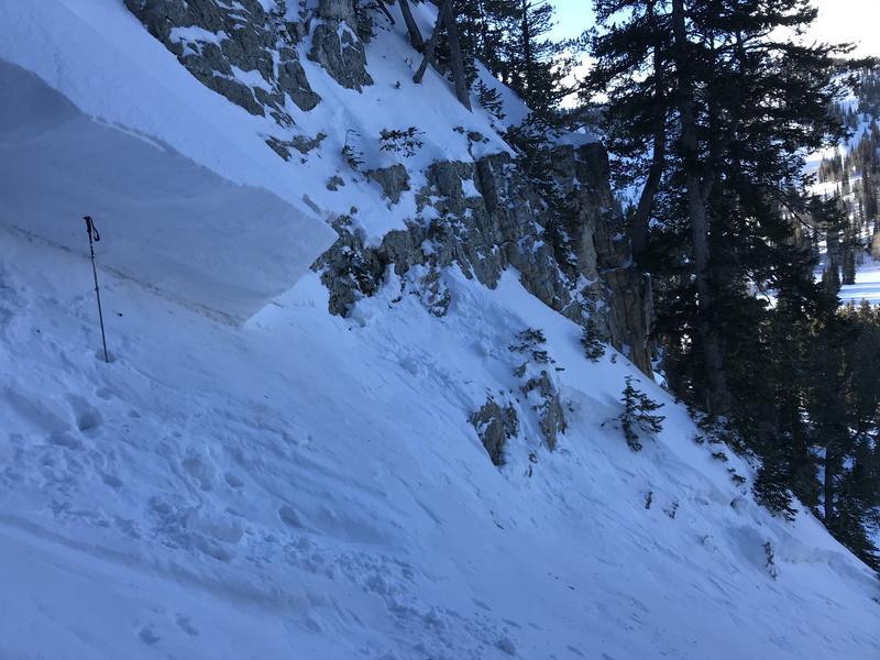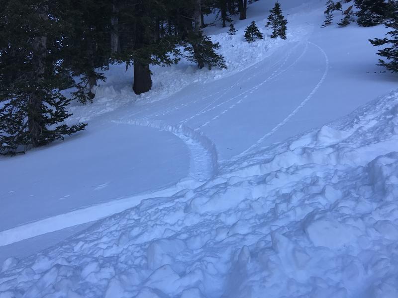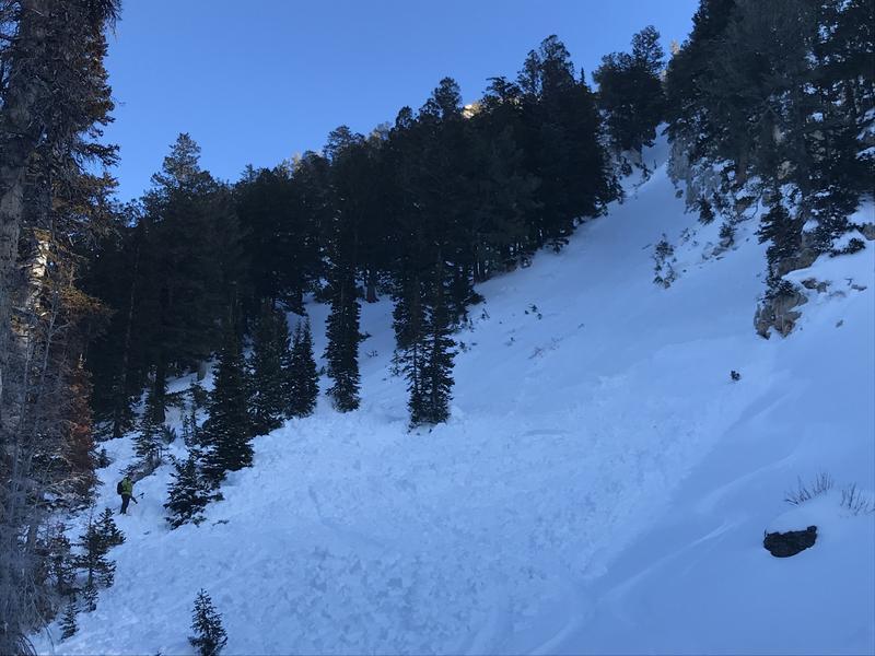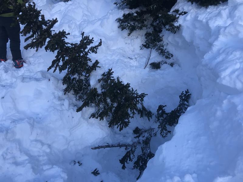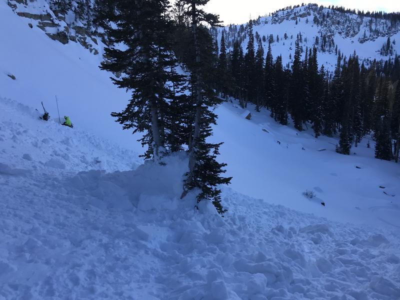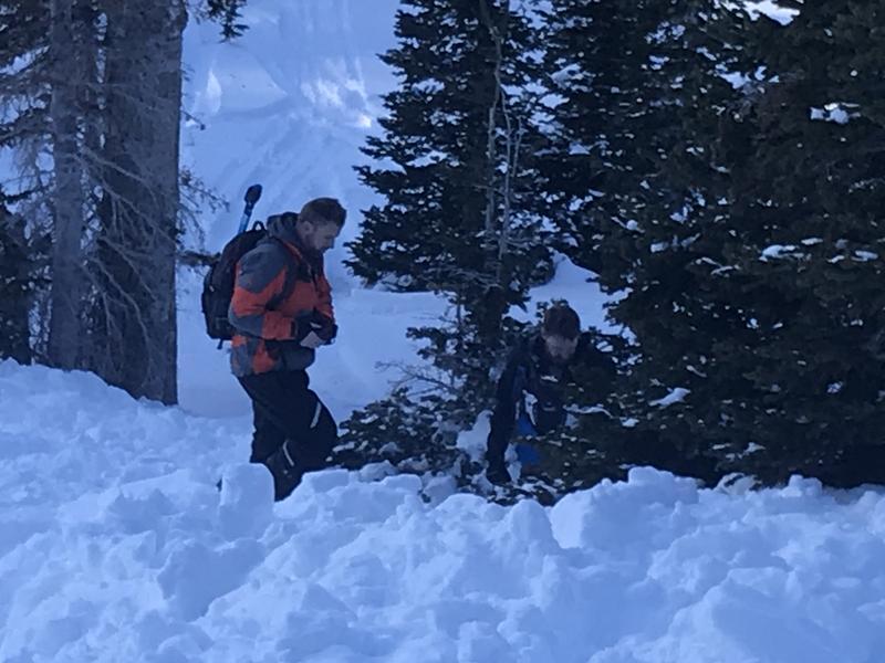 These riders were incredibly lucky to have the outcome they did. Two of the three carried avalanche rescue gear with one of those two getting buried. They thought they were staying safe in the trees as the likelihood of remote triggered slides was unknown to them. There were several reports of remote triggered avalanches in the Logan zone on the same day. After visiting the accident site, we observed two other large PWL avalanches in Steep Hollow around the same elevation but facing E.