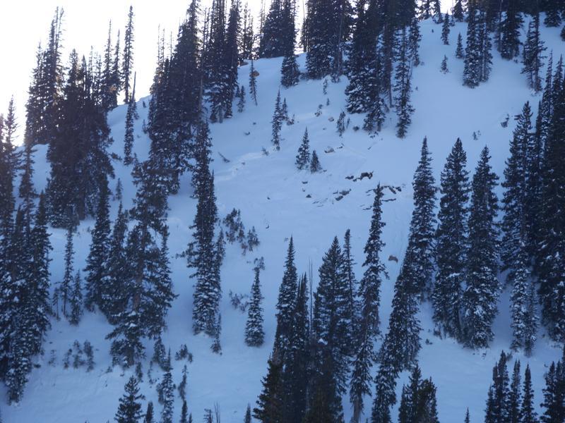 We could see evidence of a large avalanche in the Nose in upper Steep Hollow. Not sure when it happened or if it was remote triggered or a natural. We observed tracks in the area.