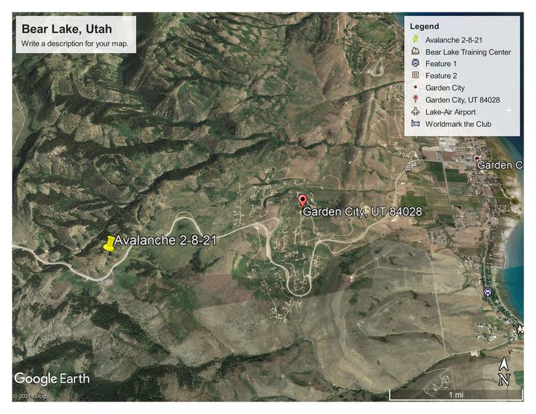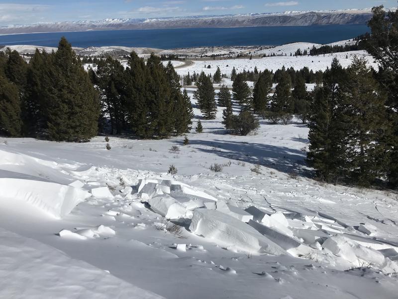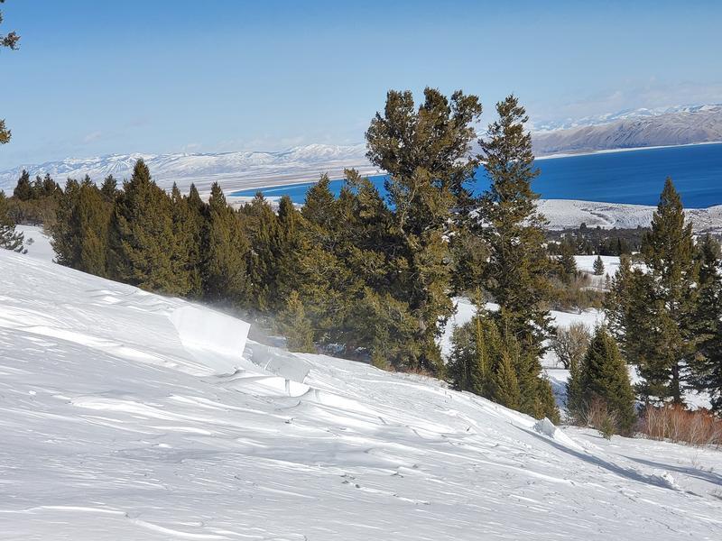 The noise/vibration from my snowmobile triggered the avalanche about 100 feet from me. There still remains a crack in the snow from the 4 foot slab slide towards my snowmobile, suggesting more snow is yet to come down. There have been high winds near the summit of Logan Canyon the last couple of days, and this cornice looked like a large wind blown cornice consisting of soft snow where the top of the ridge just above the cornice hardly had any snow. This avalanche is about 200 feet from Highway 89 in Logan Canyon and visible from the Bear Lake overlook visitor center (it's just across the street).