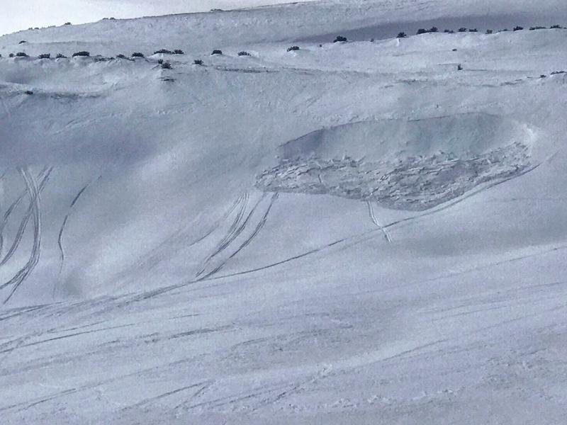 Avalanche debris overrunning snowmobile tracks is a dead giveaway that this was snowmobile triggered.