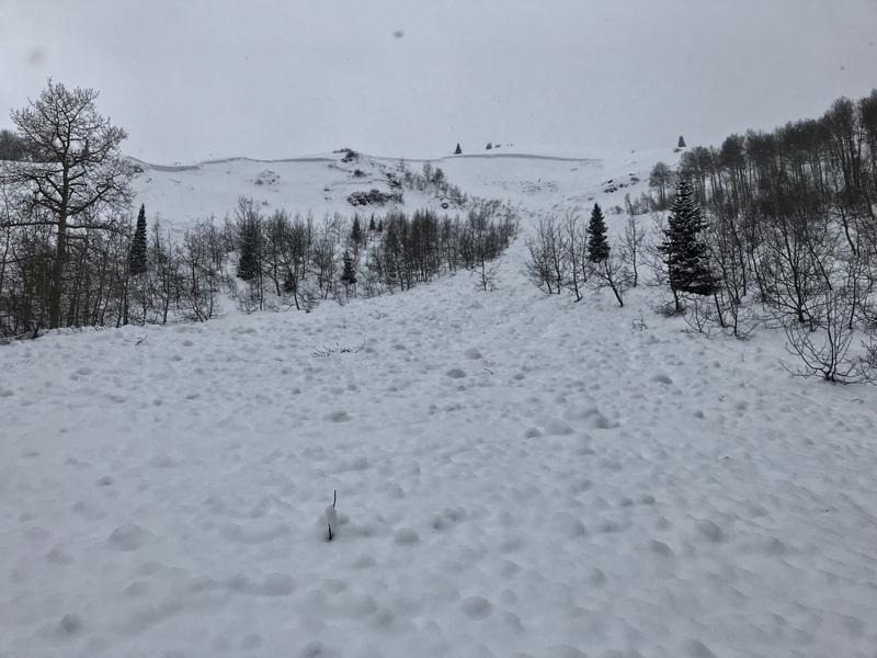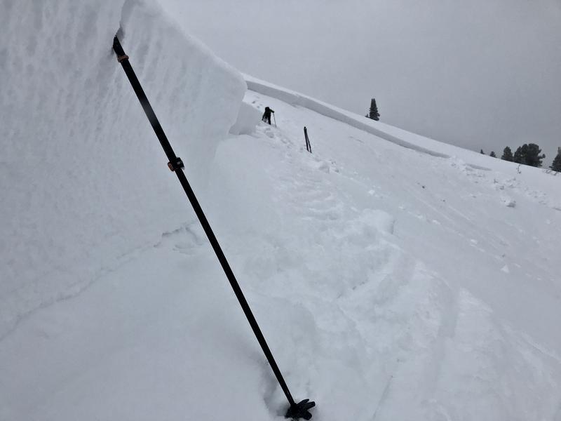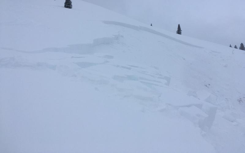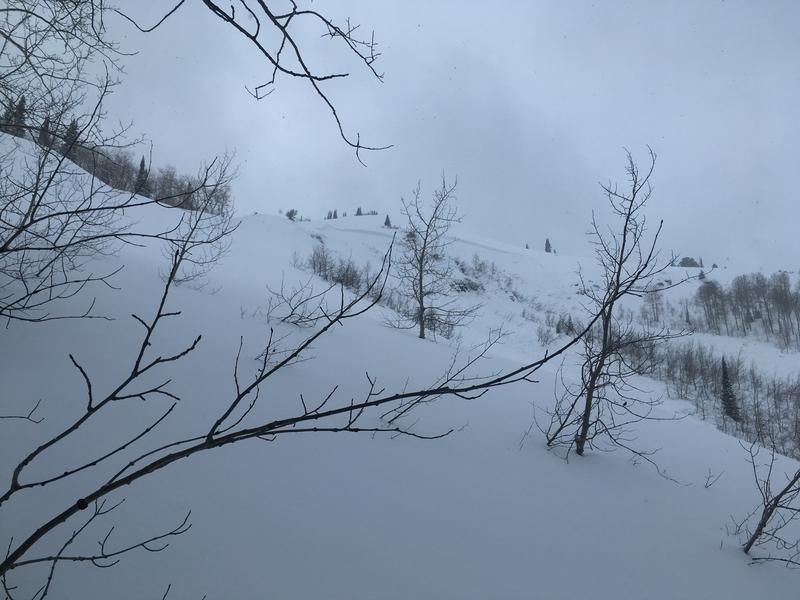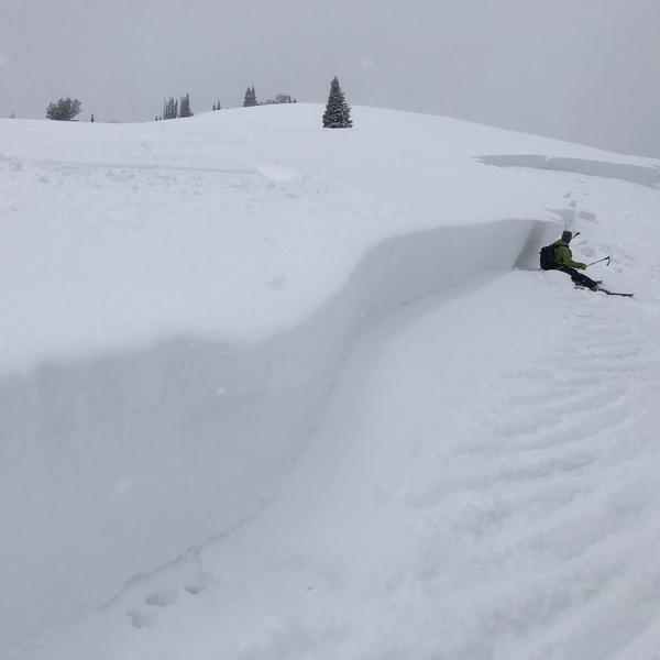 We were skiing a low angle ridge off White Pine Knob when the SE facing gut slid. It seemed like the lower pocket went first and then triggered the main gut.