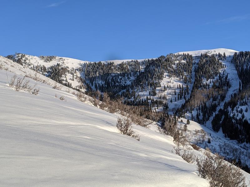 I saw both avalanches seen from pt 8,031 ft just below the Sincline North trail where the trail passes under the Folly before it wraps around the ridge towards Mill Hollow. So not the best view angle nor that close. Lots of other ski tracks in Dry Canyon, surprised no one saw or reported earlier.